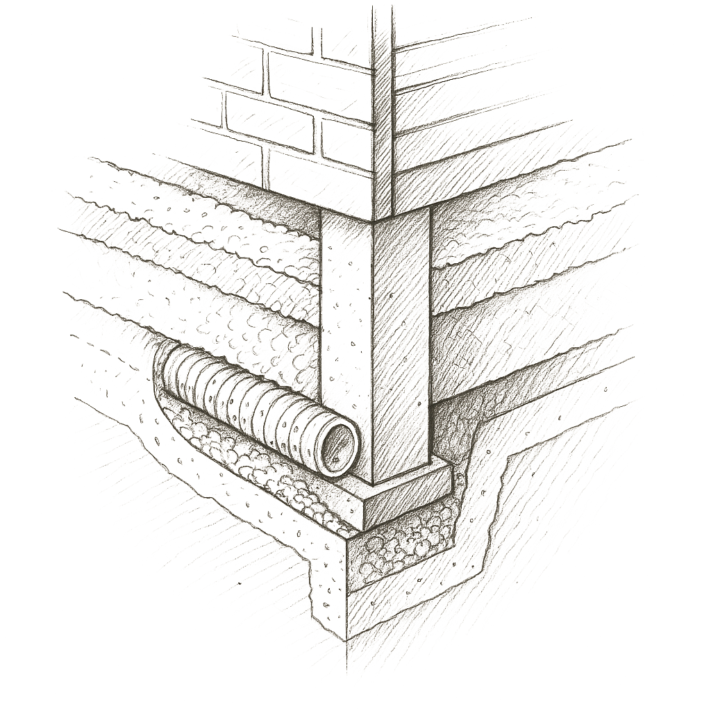 En fungerande dränering leder bort regn- och smältvatten så att fukt inte tränger in i grundmuren, vilket kan orsaka allvarliga skador.